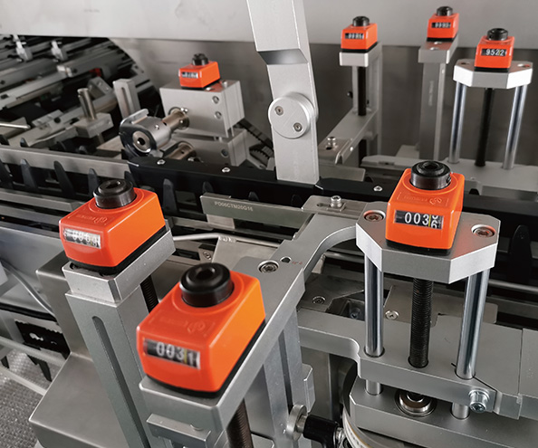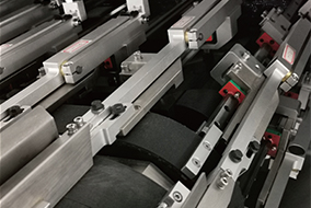 18組連續(xù)式推桿裝盒系統(tǒng),采用預(yù)壓力導(dǎo)軌,保證運行的同步精度和高速的穩(wěn)定性。